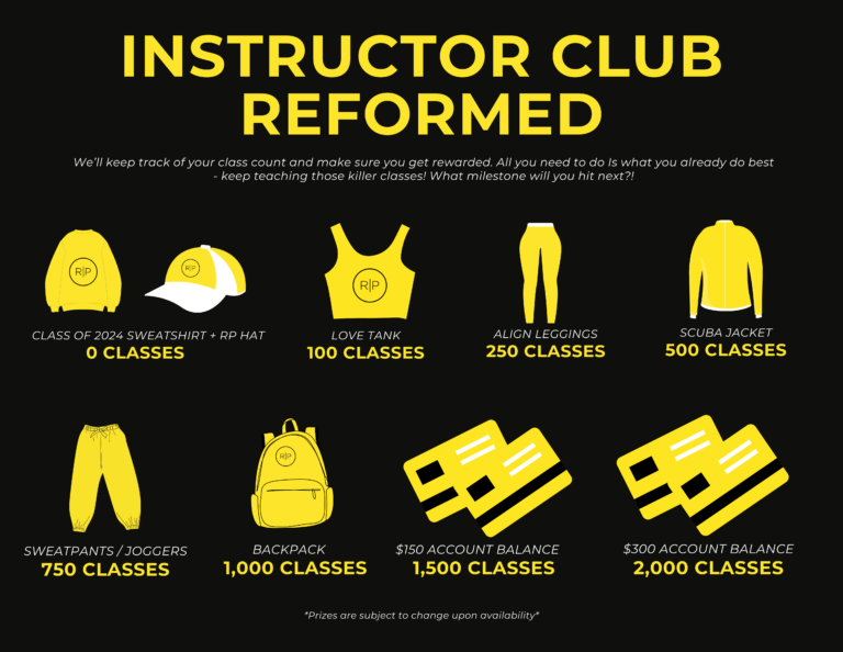 We’ll keep track of your class count and make sure you get rewarded. All you need to do Is what you already do best – keep teaching those killer classes! What milestone will you hit next?!