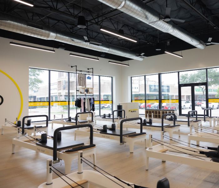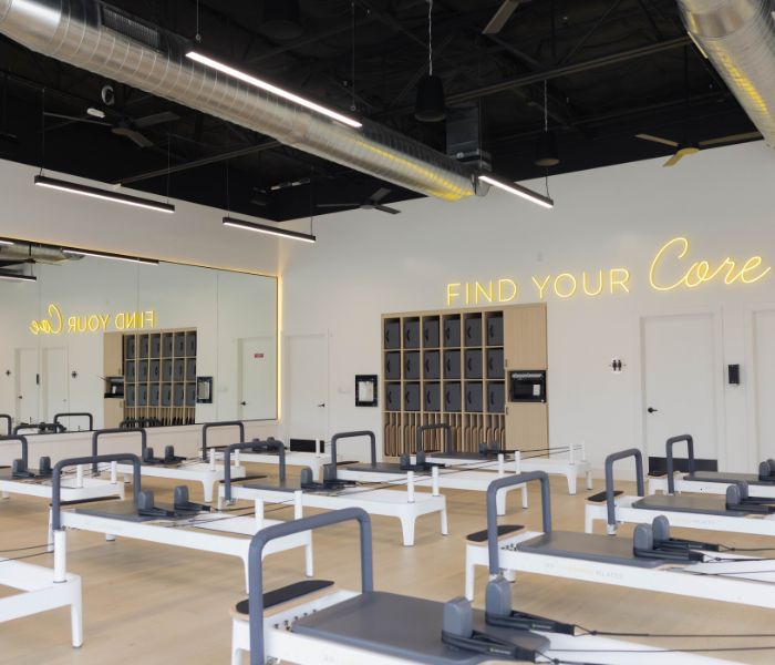 Reformed Pilates Plano is our 14th state-of-the-art studio, which opened in February 2025! This Pilates studio features 16 Balanced Body Allegro 2 Reformer Pilates machines, classes 7 days/week, and convenient access to several restaurants, salons, and amenities next door.